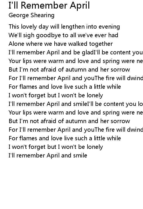 For I'll remember April and youThe fire will dwindle into glowing ashes |