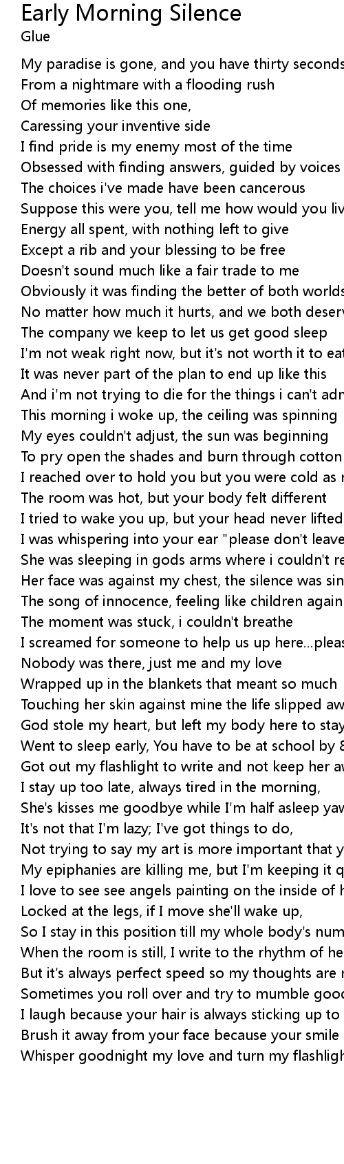 Her face was against my chest, the silence was singing |
