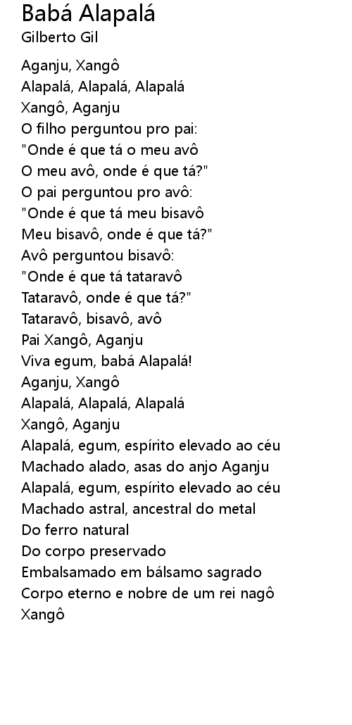 | Alapala, egum, espi rito elevado ao ce u | |