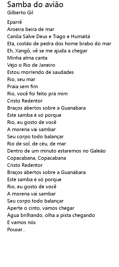 | Song | Samba do avião |