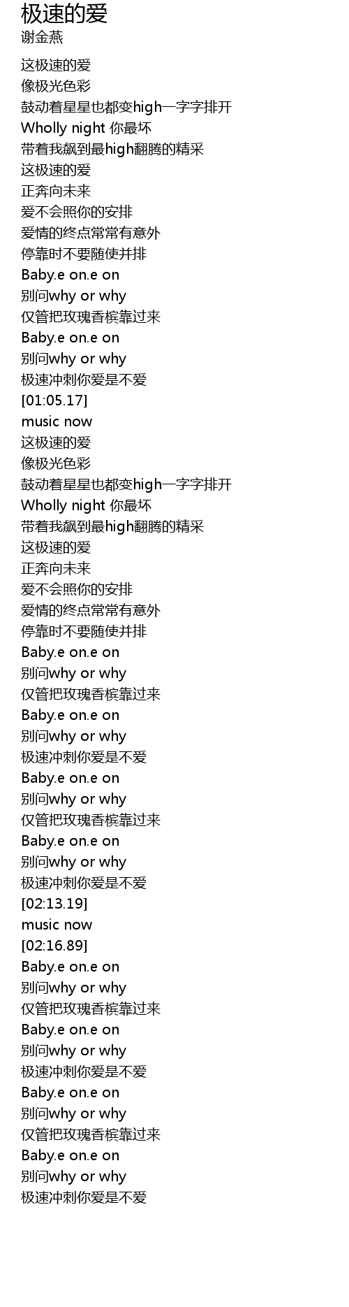 | [01:16.61] | 这极速的爱 |