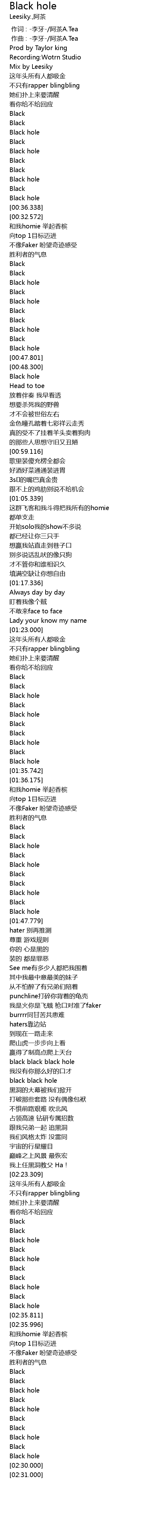 | [01:43.182] | Black hole |