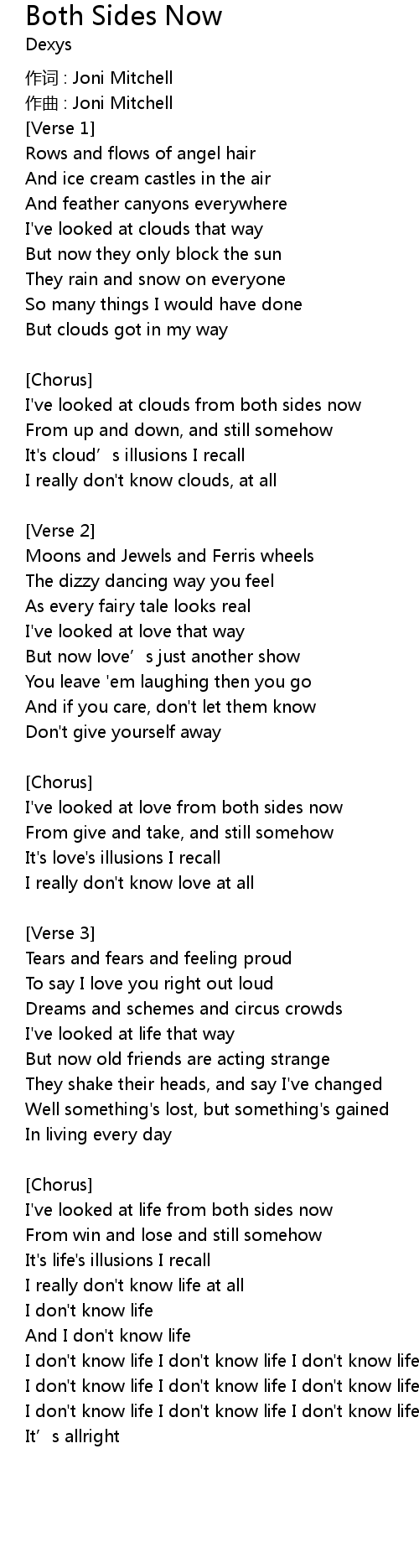 | I' ve looked at life from both sides now | |