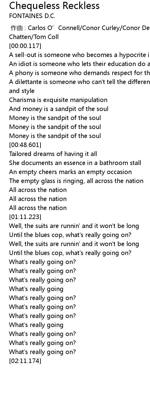 | [01:32.748] | Until the blues cop, what's really going on? |