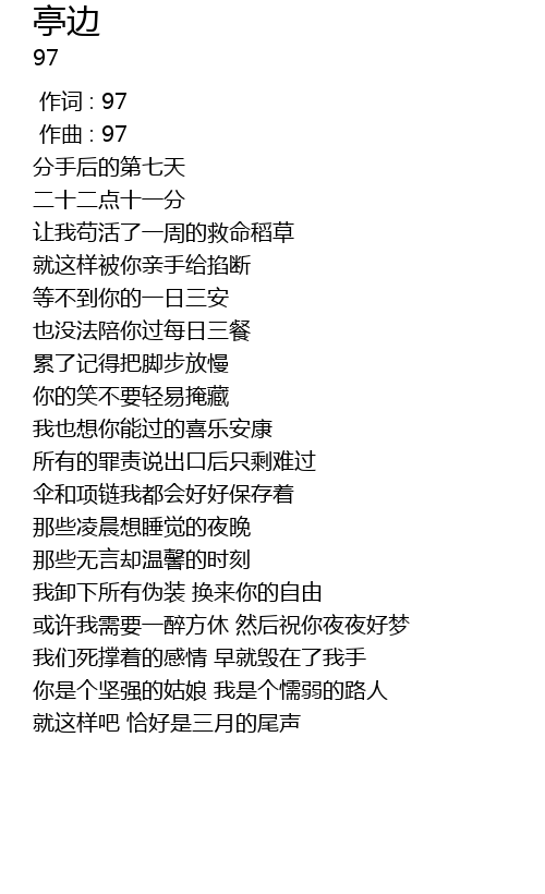 | [00:41.195] | 我也想你能过的喜乐安康 |