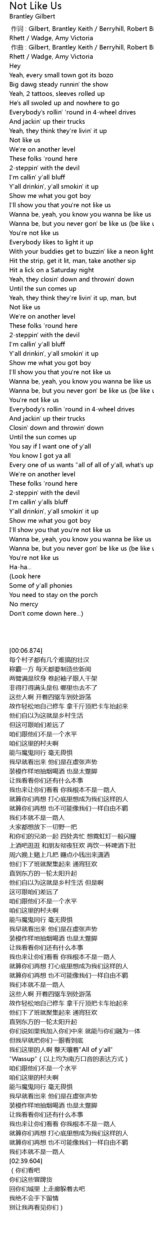 | [00:38.705] | Not like us |