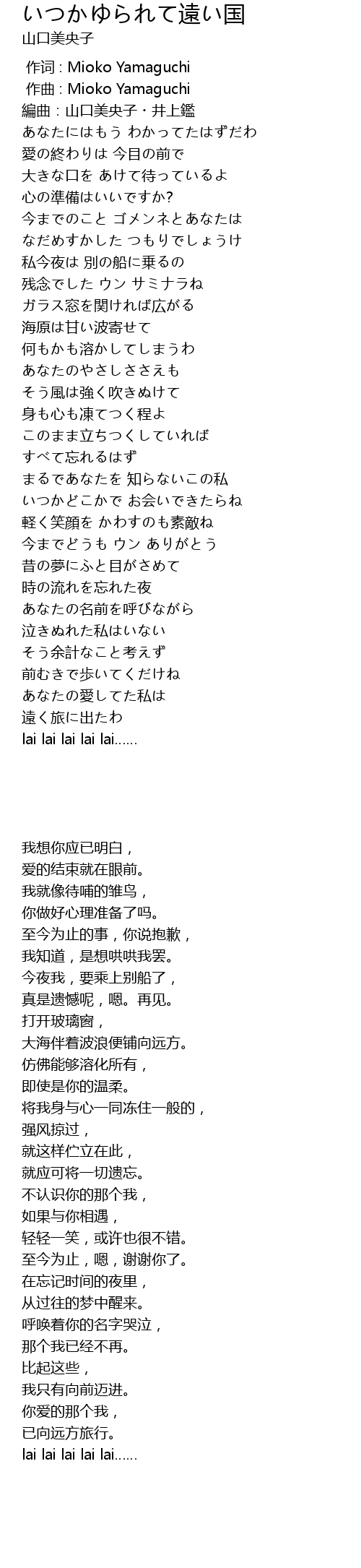 | [00:01.000] | zuò qǔ : Mioko Yamaguchi |