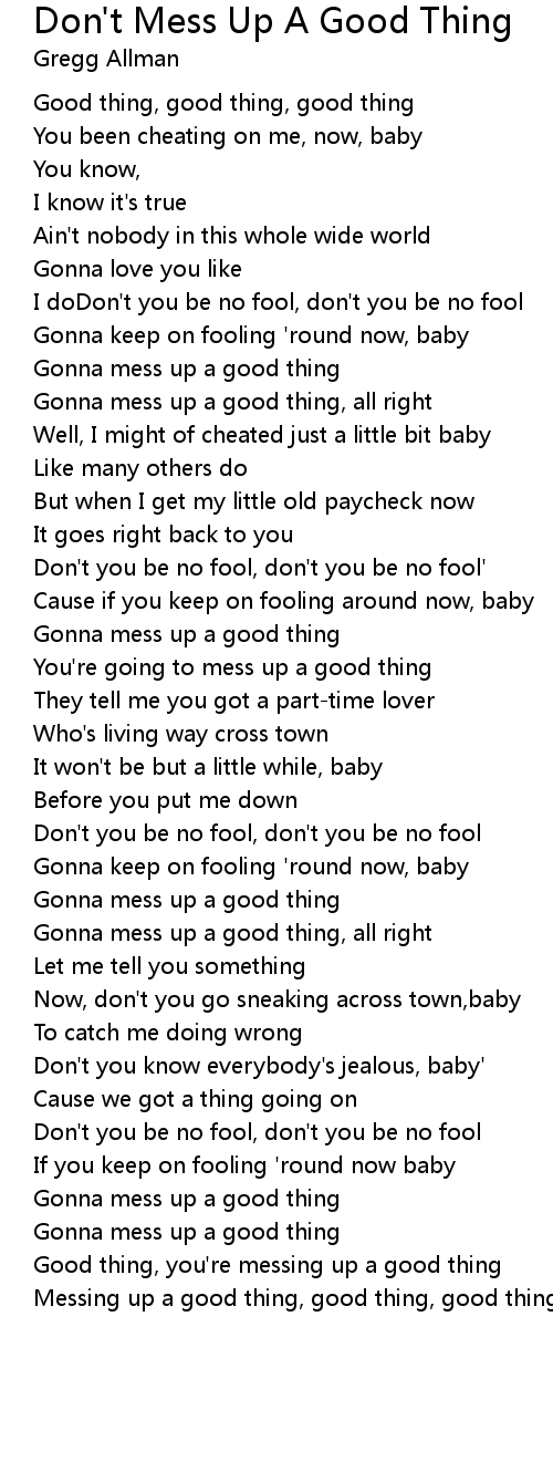 Gonna mess up a good thing |