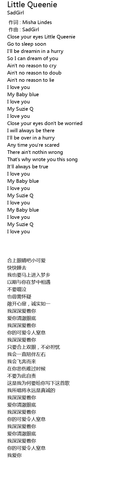 | [00:14.64] | Close your eyes Little Queenie |