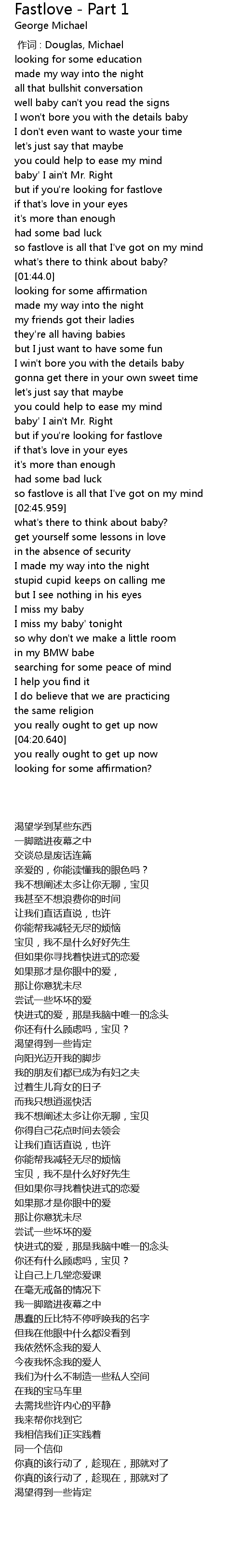 | [01:25.750] | so fastlove is all that I've got on my mind |
