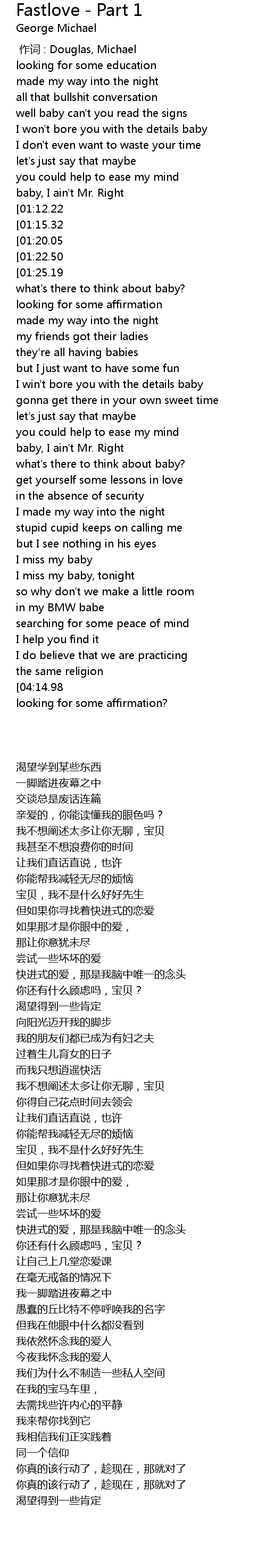 | [00:00.00] | 作词 : Douglas, Michael |