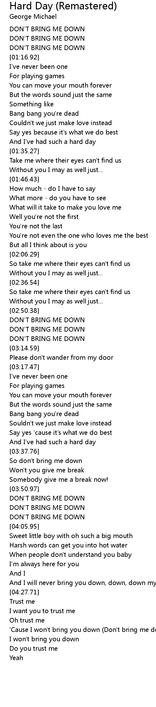 So don't bring me down |