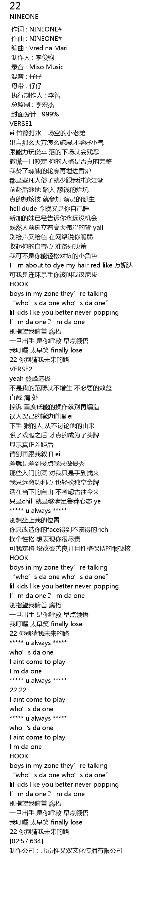 | [01:35.952] | 只是chill 就是够满足鲁莽心态 ye |
