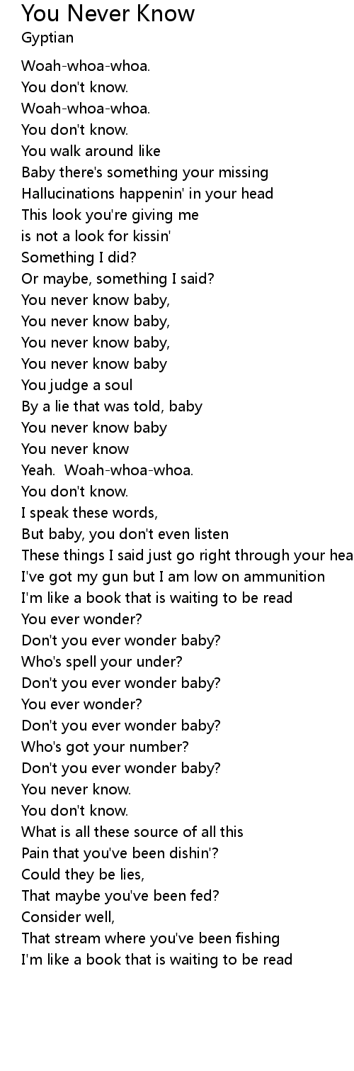 You never know baby, |