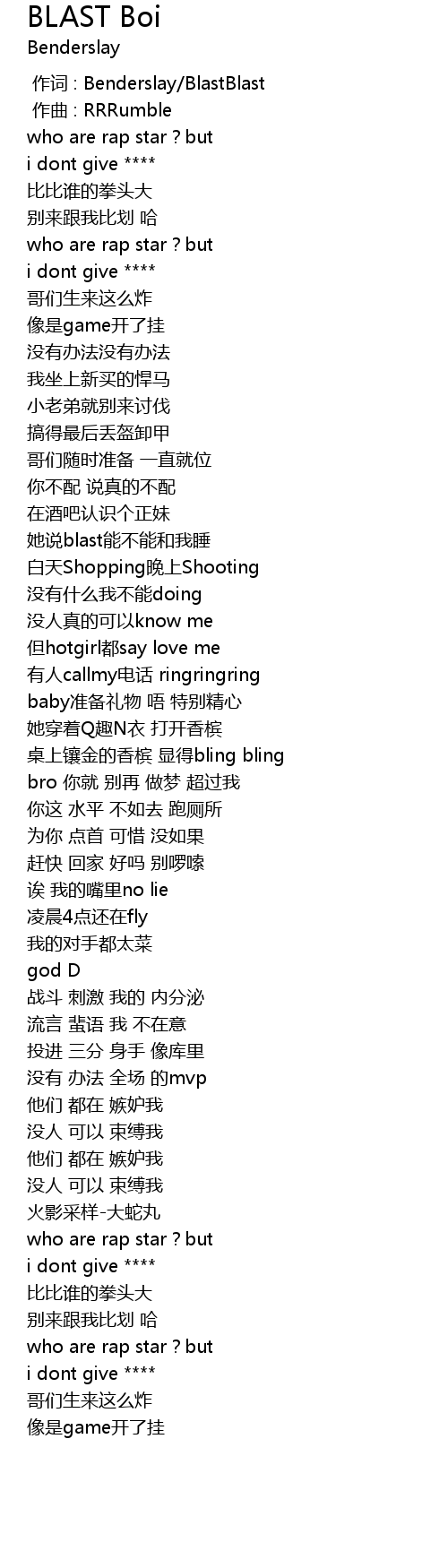 | [00:00.000] | 作词 : Benderslay/BlastBlast |