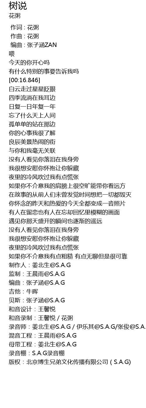 | [02:23.256] | 录音师:姜北生@S.A.G/伊乐其@S.A.G/张俊@S.A.G |