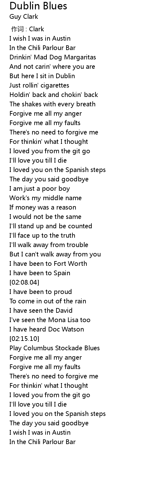 | [03:00.49] | Play Columbus Stockade Blues |