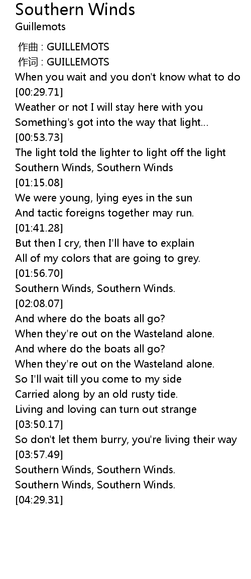 | [01:06.02] | Southern Winds, Southern Winds |