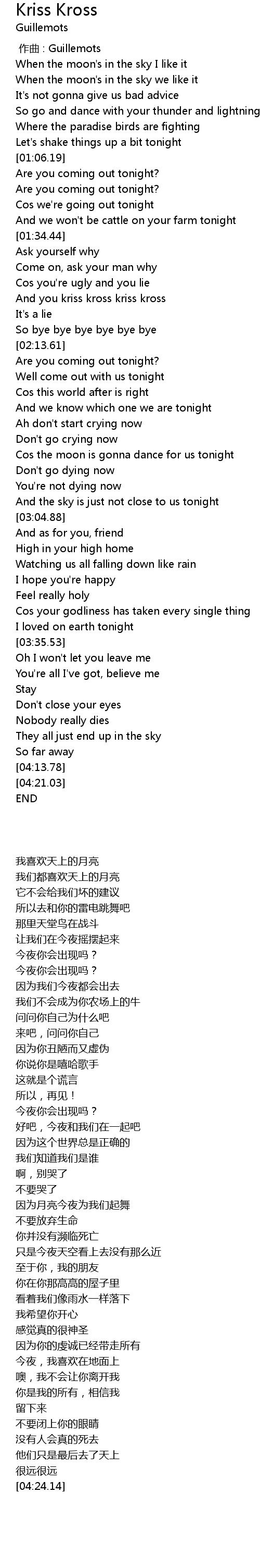 | [02:06.79] | And you kriss kross kriss kross |