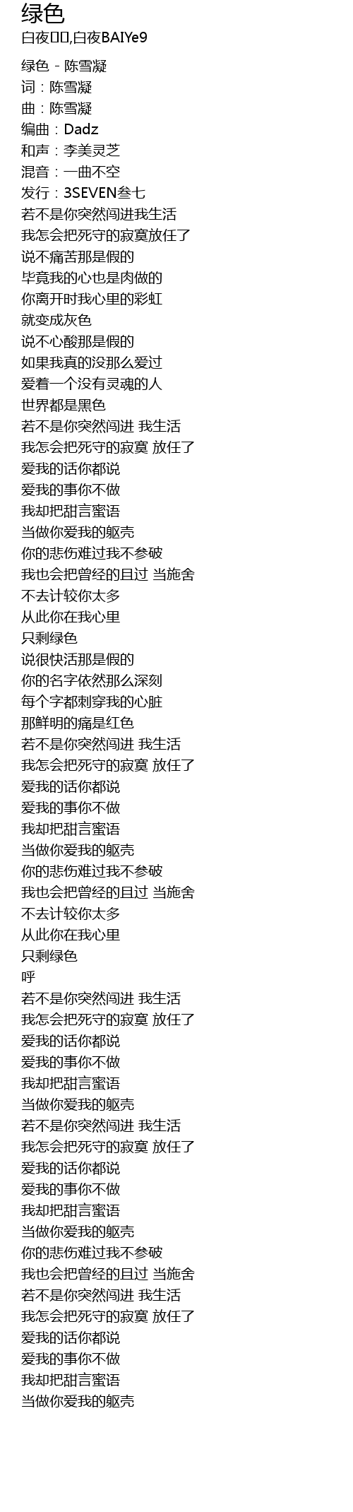 | [00:00.00] | 绿色 - 陈雪凝 |