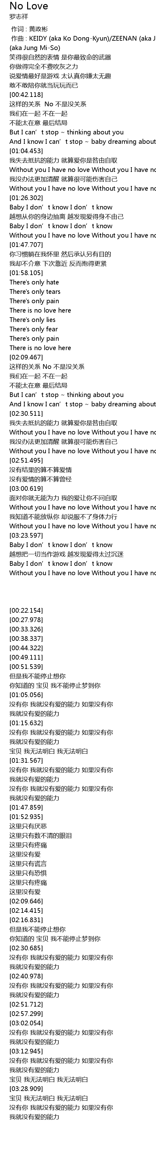 | [02:35.556] | Without you I have no love Without you I have no love |