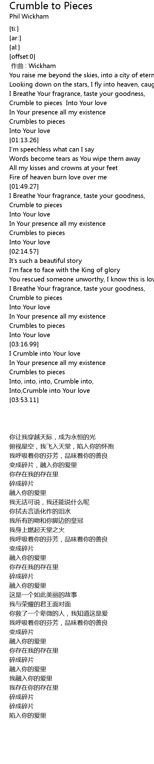 | [01:56.06] | Crumble to pieces |