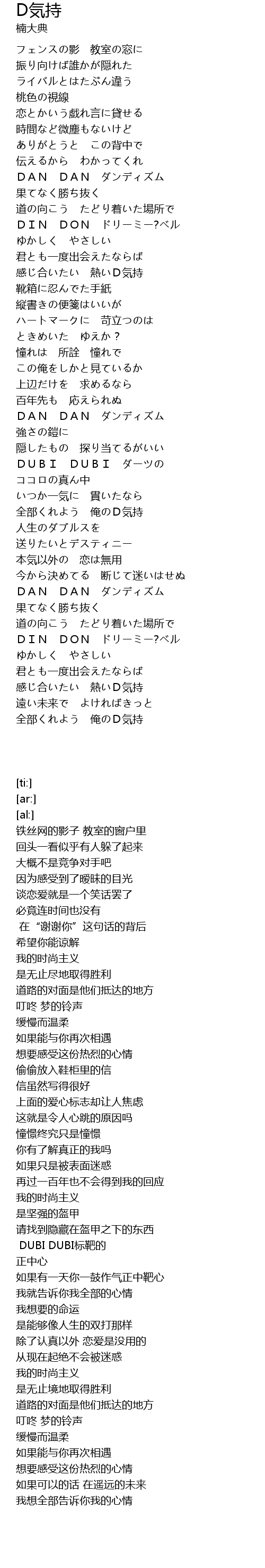 | [03:44.81] | DAN DAN ダンディズム |