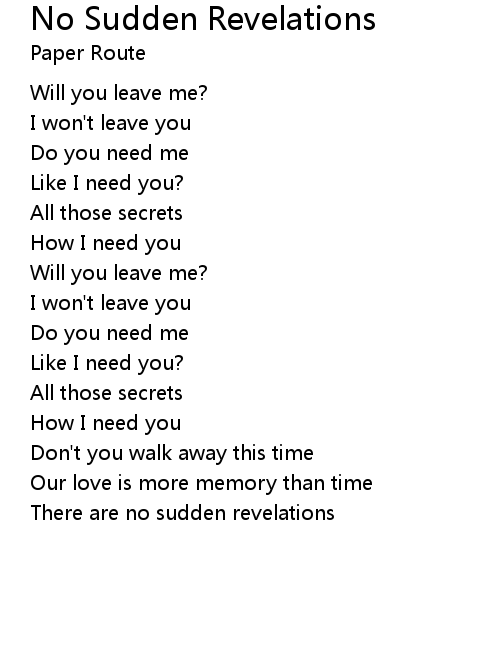 | Song | No Sudden Revelations |