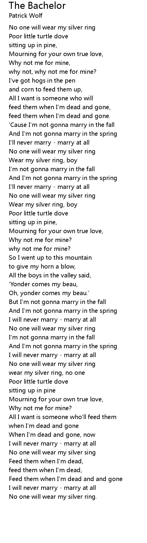 And I'm not gonna marry in the spring |