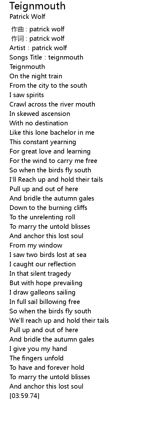 | [00:00.336] | 作词 : patrick wolf |