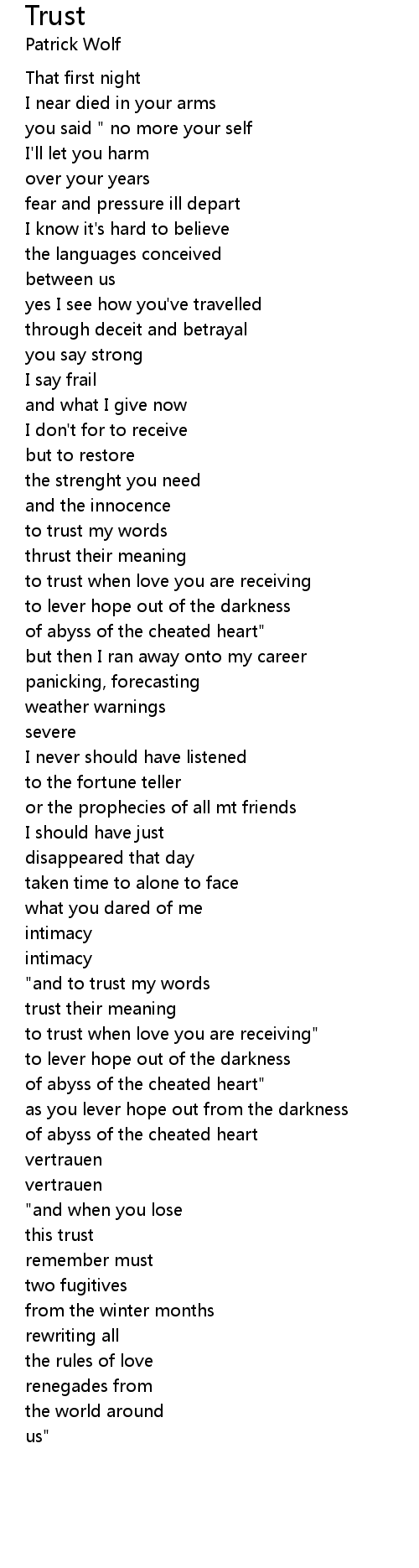 "and to trust my words |