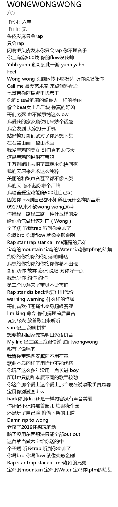 | [00:37.949] | Wong wong 头脑运转不够发达 听你说唱像你 |