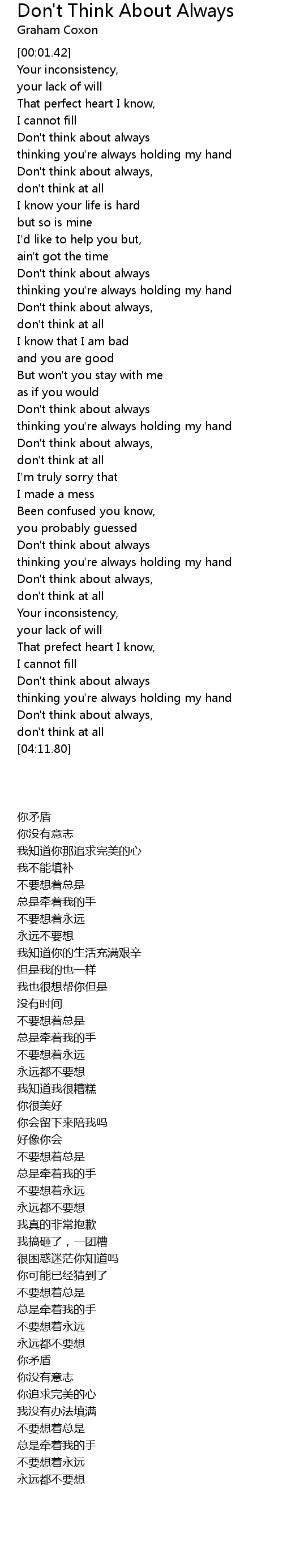 Don't think about always, |