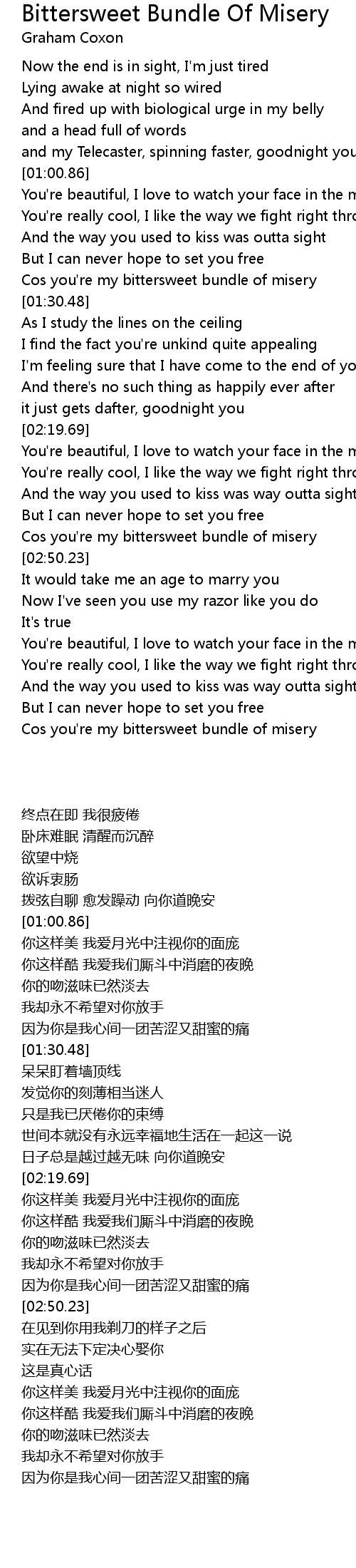 Cos you're my bittersweet bundle of misery |
