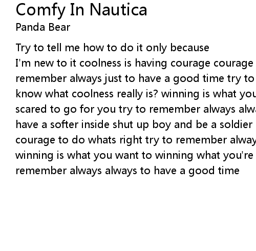 I'm new to it coolness is having courage courage to do whats right ill try to remember always just to have a good time try to show me that you know me do you know what coolness really is? winning is what you want to winning what you're scared to go for you try to remember always always to have a good time try and have a softer inside shut up boy and be a soldier coolness is having courage courage to do whats right try to remember always always to have a good time winning is what you want to winning what you're scared to go for you try to remember always always to have a good time |