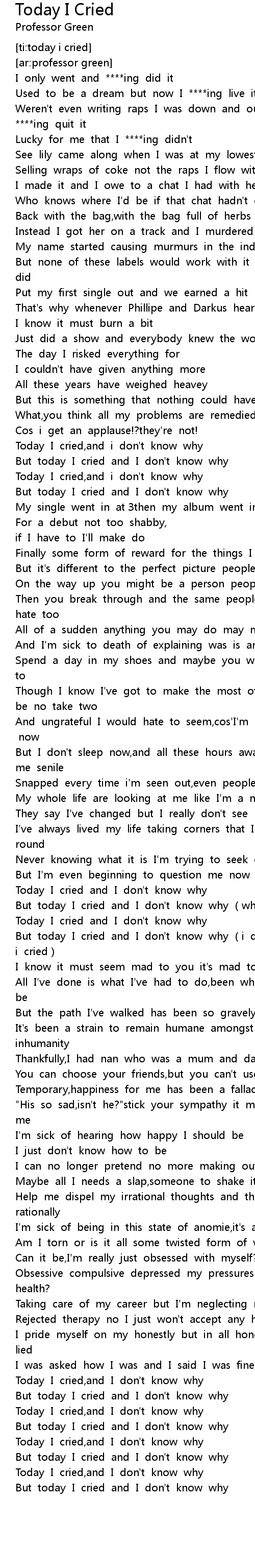| [03:25.45] | But today I cried and I don' t know why i don' t know why i cried |
