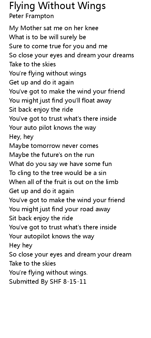 You're flying without wings |