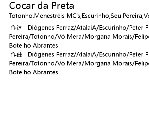 | [00:00.000] | 作曲 : Diógenes Ferraz/AtalaiA/Escurinho/Peter Fé/Seu Pereira/Totonho/Vó Mera/Morgana Morais/Felipe Gomes/Teo Filho/Geraldo Lima/Ucla Botelho Abrantes |