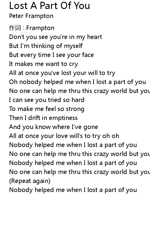 | Nobody helped me when I lost a part of you | |