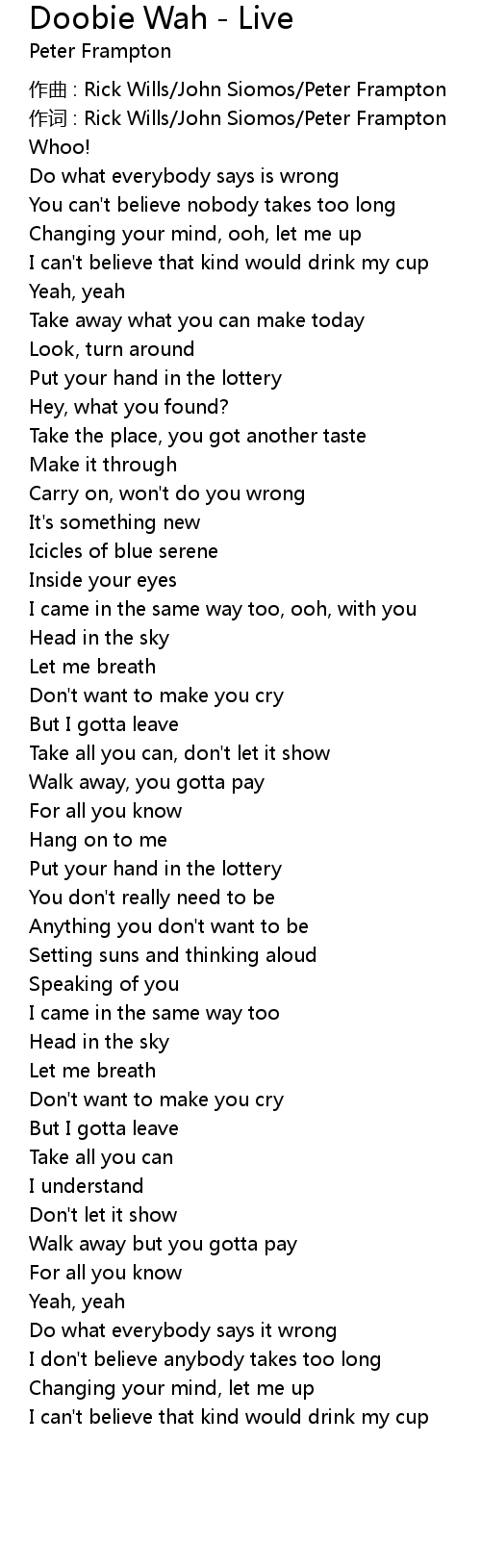 | 作词 : Rick Wills/John Siomos/Peter Frampton | |