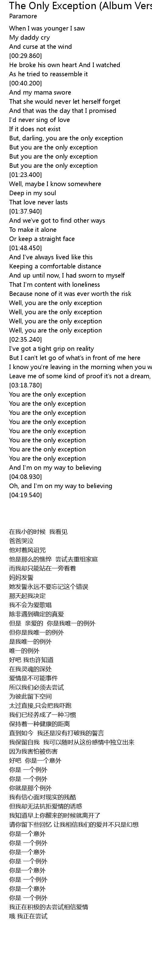 | Song | The Only Exception (Album Version) |