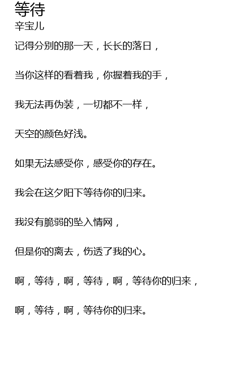 | 啊,等待,啊,等待,啊,等待你的归来, | |