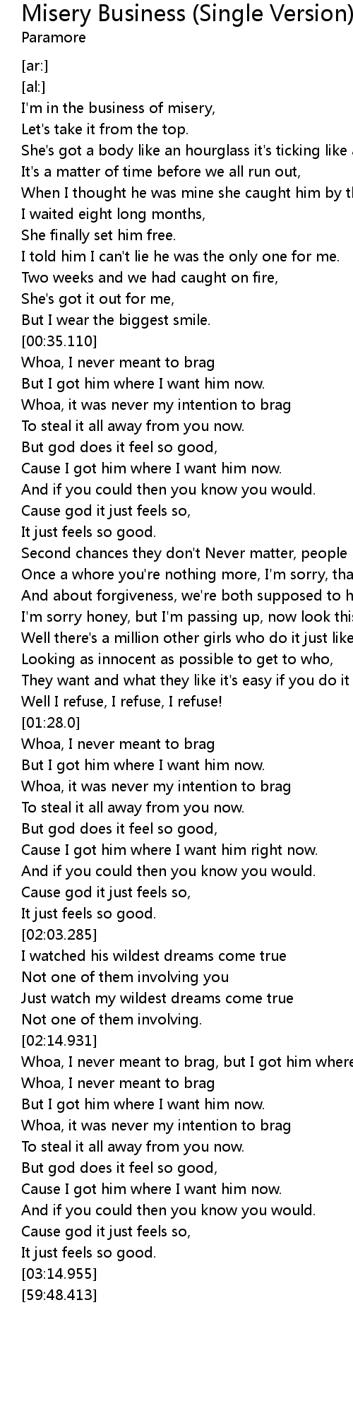 | [01:36.900] | Whoa, it was never my intention to brag |