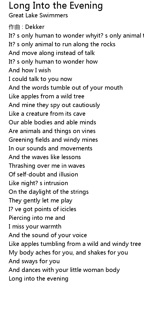 | Song | Long Into the Evening |
