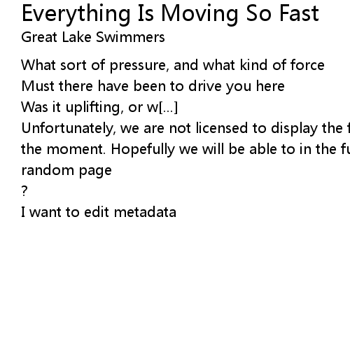 | Song | Everything Is Moving So Fast |