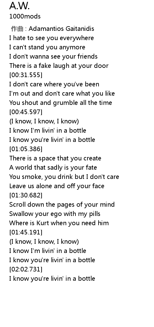 | [01:24.172] | You smoke, you drink but I don' t care |