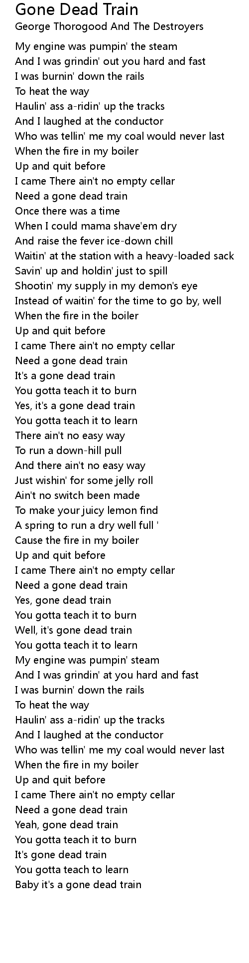 Baby it's a gone dead train |