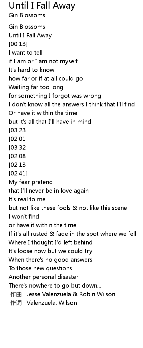 | [03:08][02:13][01:10] | Until I fall away... |