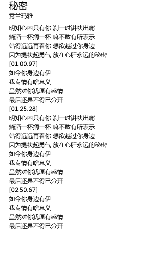 | [01:54.27] | 明知心内只有你 刹一时讲袂出嘴 |