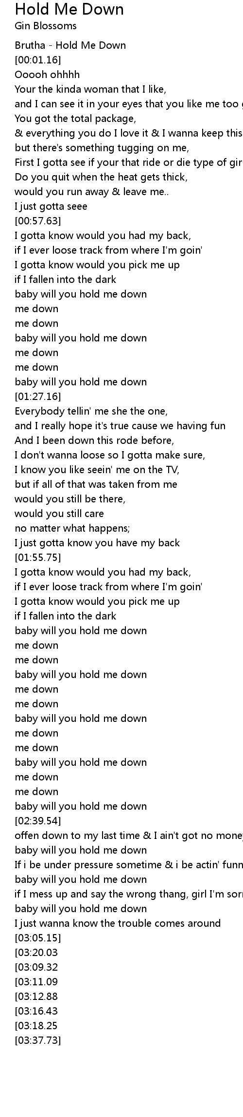 baby will you hold me down |